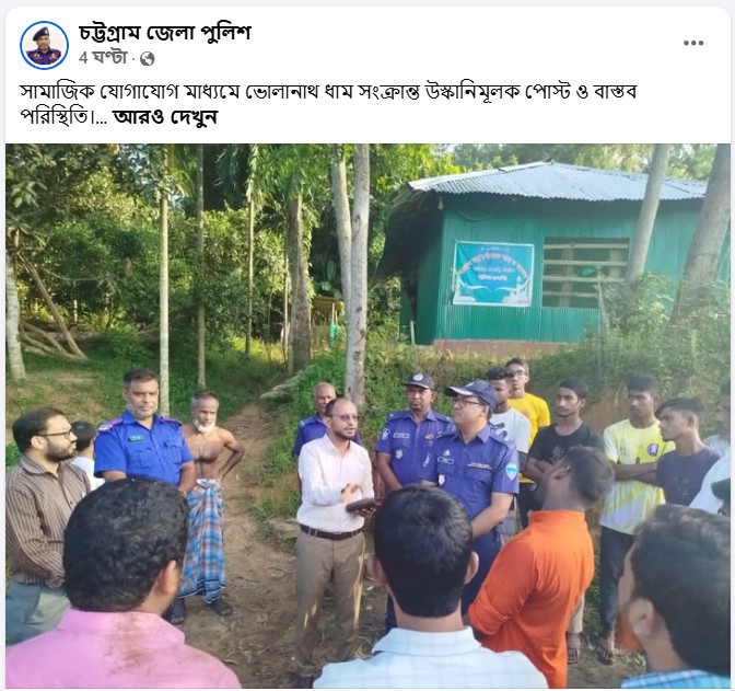 সামাজিক যোগাযোগ মাধ্যম ফেসবুকে ‘ভোলানাথ ধাম মন্দির’ সংক্রান্ত একটি বিভ্রান্তিকর ও উস্কানিমূলক পোস্ট প্রচার করা হয়।