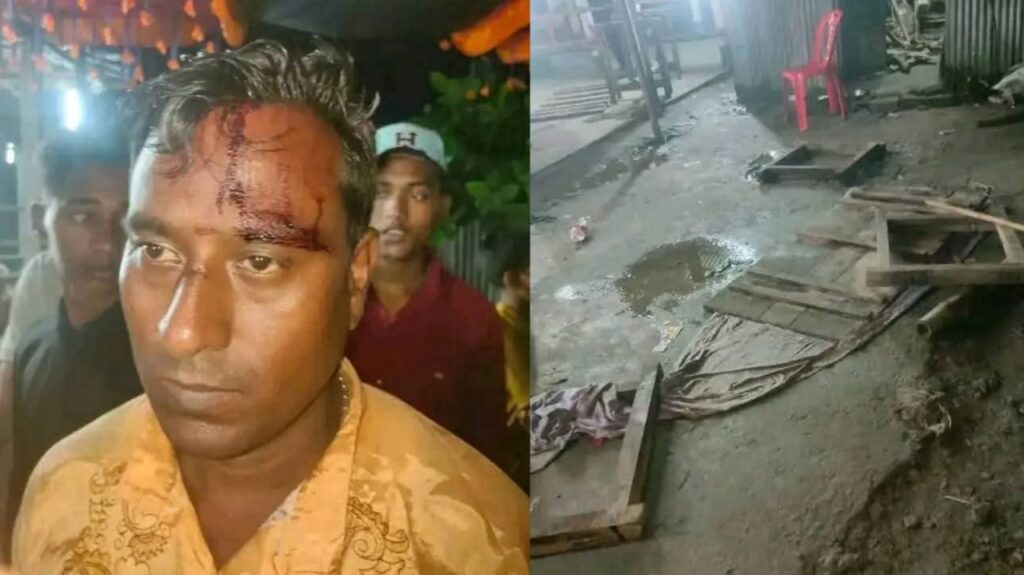 এতে পূজা কমিটির সভাপতি অমিত দাস ছাড়াও অজয় দাস, আকাশ দাস, অনন্ত দাস, সুমন দাস, সত্যজিৎ চক্রবর্তী, পরিতোষ দাস ও অনিক দাস আহত হন।