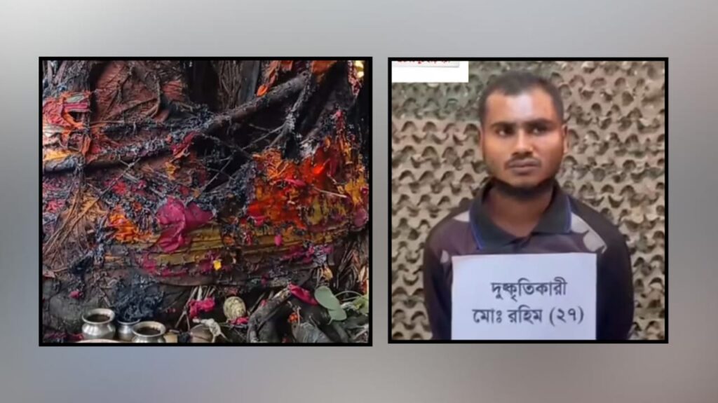 বৈশালী বিহারের শতবর্ষী বোধিবৃক্ষ ও বুদ্ধমূর্তির চীবর (কাপড়) পুড়িয়ে দিয়েছে মো. রহিম(২৭)। এই ঘটনায় তাকে আটক করে বাংলাদেশে সেনাবাহিনী।